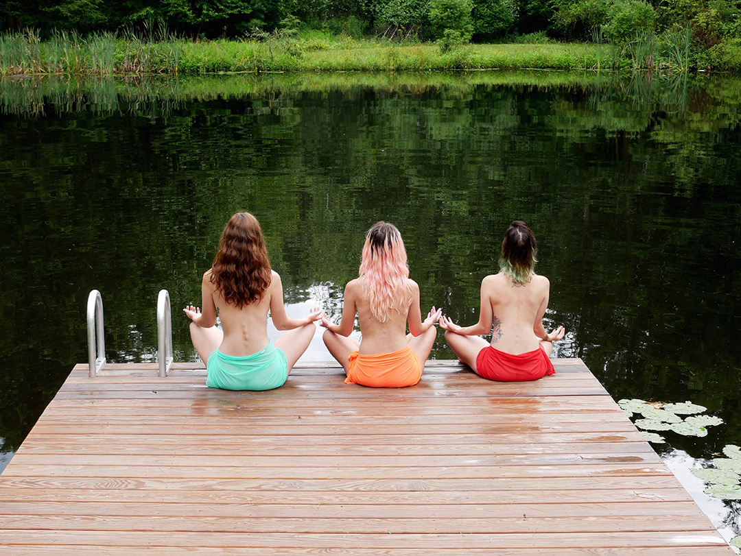We shot this video in a public park one lovely summer morning. There was only one person hanging out by the falls when we started but we asked him if he minded the girls getting naked and of course he didn’t. We invited him to watch as long as he stayed out of the shot, for which he was happy to oblige. A few more people passed by during the course of the shoot but they all respectfully kept their distance so as not to interrupt the shooting. A wonderful time was had by all!