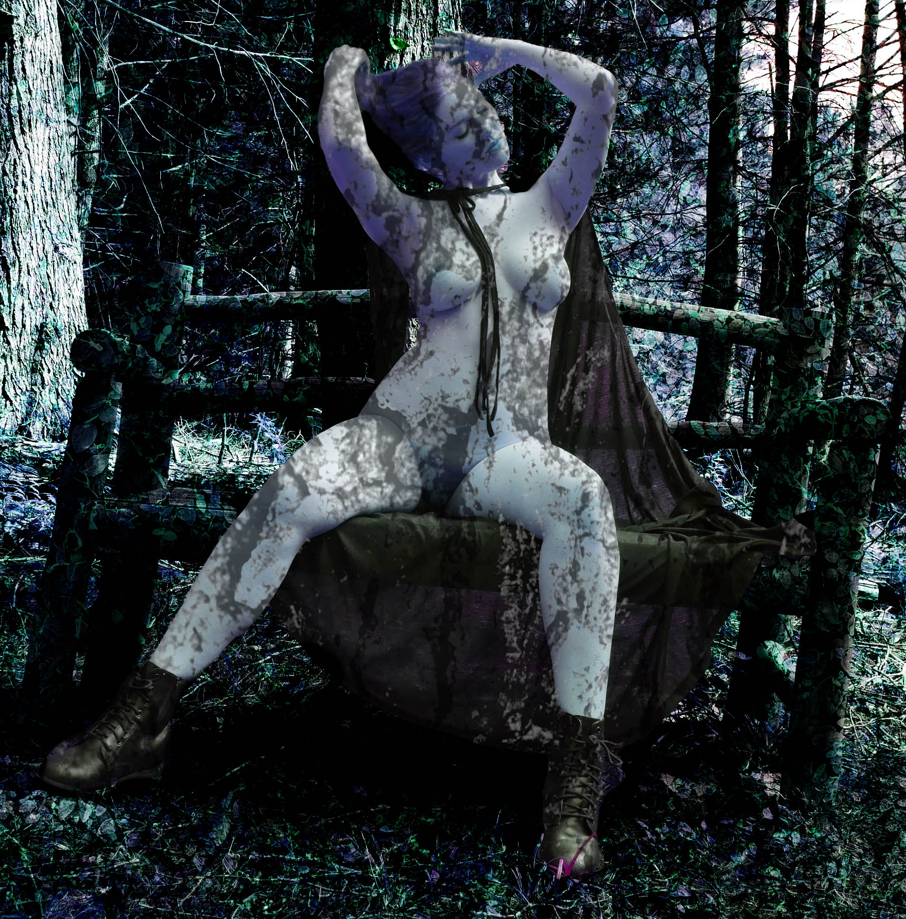 A wood nymph wakes up in her bed in the middle of a magical forest. She walks through the forest and gathers up her clothes to get dressed for the day. Model: Lenny Langley